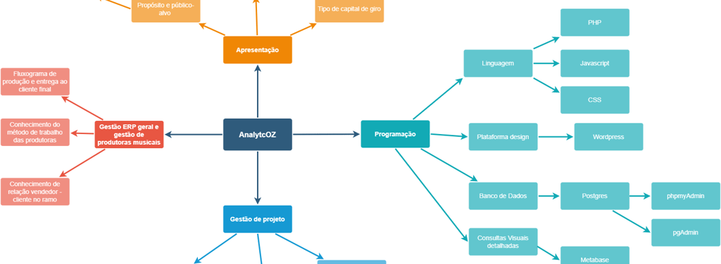 As imagens apresentadas ilustram o processo detalhado do desenvolvimento do projeto AnalytcOZ, desde a concepção inicial até a implementação final. A sequência visual mostra as etapas de pesquisa, planejamento estratégico e design, além das ferramentas utilizadas para criar uma solução inovadora voltada para o gerenciamento de dados e indicadores no setor de entretenimento. Cada imagem reflete os avanços do projeto e o comprometimento em fornecer uma plataforma intuitiva e eficiente para profissionais como influenciadores digitais, produtores musicais e social media.